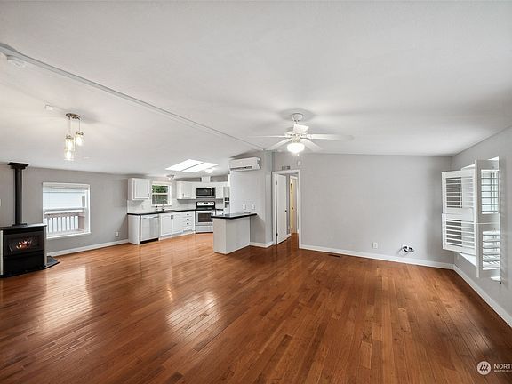 Welcome to Serenity!! This fully updated & well cared for home has it all. New roof, skylights, hot water heater & dura skirt. There is not one space that hasn't been upgraded!! Beautiful front porch leads to your living space w/ hardwoods throughout, paint, lighting, trim & modern pellet stove keep this home warm all winter & split mini keeps it cool all summer. Kitchen has new counter tops, farm sink & SS appliances. Farm house barn door leads to the tiled laundry room & back deck over looking the 1.5 acres of mature landscaping! You cant miss the 1440 sq. ft. shop w/ electricity, loft for tons of storage & Concrete area poured for a car lift. 10X20 barn style shed has plenty of room for riding lawn mower & landscaping tools.