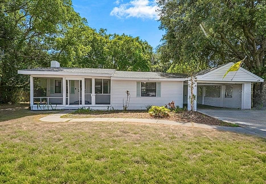 Welcome Home! Don't miss the opportunity to own this beautiful 4-bedroom 2-bathroom single family residence located in the heart of Tavares. This property is comprised of a 1,720 sq/ft main home and an additional 400 sq/ft detached space with water and air conditioning making it a total of just over 2,100 sq/ft of living space with no HOA. This property underwent an extensive renovation in 2021. When arriving to the property you are greeted with a landscaped front yard, an oversized carport for parking and storage, and an enclosed porch perfect for enjoying your morning cup of coffee. Stepping inside you will find your living room with large windows allowing vast amounts of natural light to shine through, laminate flooring, and a wood-burning fireplace perfect for the winter season. Directly to your right, you will find two oversized bedrooms with walk-in closets ensuring all of the family has ample space. You also have a spacious shared bathroom with a washer and dryer area inside making the chores of laundry seamless. Towards the center of the home you will find your kitchen with newer stainless steel appliances, granite countertops, and a breakfast nook. Heading into the back of the home you have a hallway with a built-in bench for seating, a pass through window from the kitchen and a third bedroom with tiled floors and a large closet. The master bedroom is spacious with a built-in entertainment center, large windows overlooking the beautiful backyard, his and hers closets, and an en suite bathroom with a tiled walk-in shower, toilet, and vanity. The oversized backyard is fully fenced with rear gates allowing great access for work trailers or boat parking. You also have a covered patio and a 400 sq/ft detached building with laminate flooring, running water, and a large storage closet making the perfect space for someone wanting more privacy and utilizing it as a bedroom or wanting to build their dream game room. This home has so much to offer while also being competitively priced, not to mention being seconds away from some of Florida's best fishing lakes. Don't wait, schedule your private showing today!