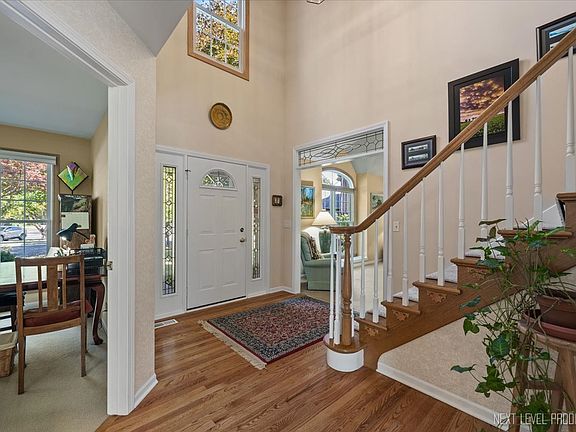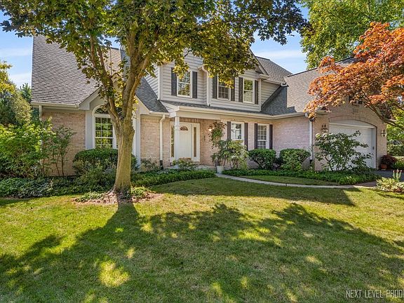Ashbury north facing home on a premium cul de sac .5 acre lot,one of the largest lots in the subdivision. Home has been meticulously maintained. Enter to a two story foyer with a split staircase. The first floor den is conveniently located off the foyer. The vaulted living room adds style and leads to the large dining room with a tray ceiling. The entire home has white trim with newer carpet throughout. The kitchen features granite countertops, and new stainless steel appliances(see feature sheet). The sunroom is multipurpose and could be a large eating area, with views of the amazing lushly landscaped back yard. The family room also overlooks the deck and rare oversized back yard and features a cozy fireplace. The large laundry room is on the first floor. Upstairs find everything you need, a master bedroom with an extra large ensuite bathroom. The master also has two walk in closets. Three more bedrooms, one has a 13 x 6 closet. The hall bath has a double bowl vanity and a door separating the tub/shower area. The garage floor has an epoxy finish and a bump out storage area. There is a sprinkler system and the yard has many fruit trees and beautiful plantings, including flowering spring bulbs. New furnace and air conditioner 2024, new roof 2020 , for more updates and improvements see feature sheet. Ashbury is a pool community, zero-depth with a water slide, sand play area, sand volleyball, and a clubhouse. Patterson Elementary is in the subdivision, Gregory Middle is in the next subdivision, and Neuqua Valley High School is 1.5 miles away. Frontier Park is nearby as well as the Library, shopping, movie theatre, and dining.