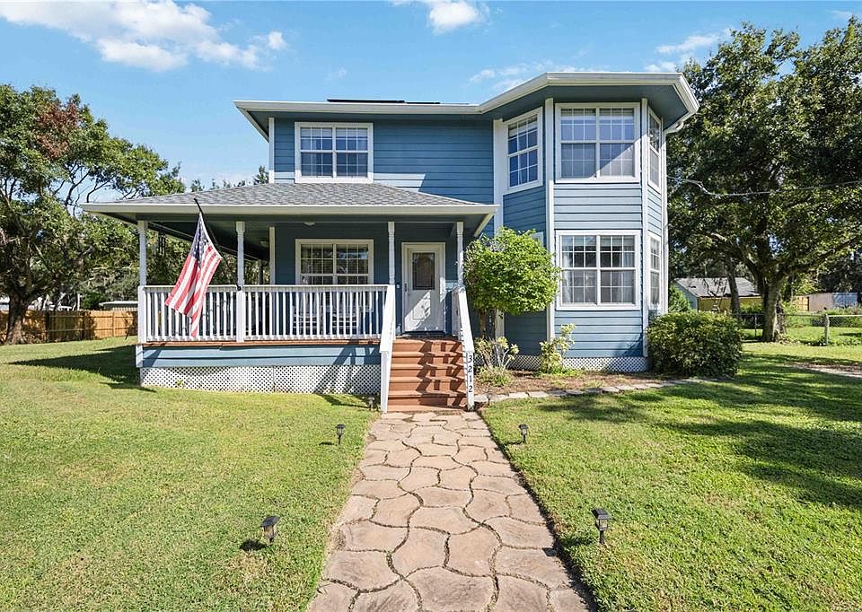 Generously sized bedroomsWraparound front porchPrivate backyardBreakfast nookOver half an acre
