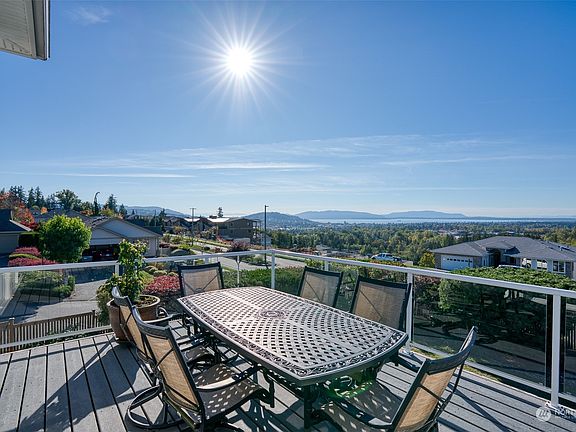 Stunning Barkley Neighborhood Home with Panoramic Views of Bellingham Bay, The San Juan Islands and the Canadian Mountains. This 4 Bedroom 3.5 Bathroom Home with over 3200 square feet of Open Concept living featuring a Gourmet Kitchen, separate Dining and Living areas which open onto an Expansive Deck perfect for Entertaining. The Primary Bedroom features Stunning Views, access to the Deck and a Luxurious Spa like Bathroom, including Radiant Floor Heat. Downstairs offers a Spacious Family Room, 3 Large Bedrooms, one with an Ensuite and 2 Large Storage rooms. The Fenced backyard is Perfect for Gardening and Outdoor Activities. Located near the Interurban Trail System, Barkley Village Shopping and Great Restaurants. Did I mention the Sunsets