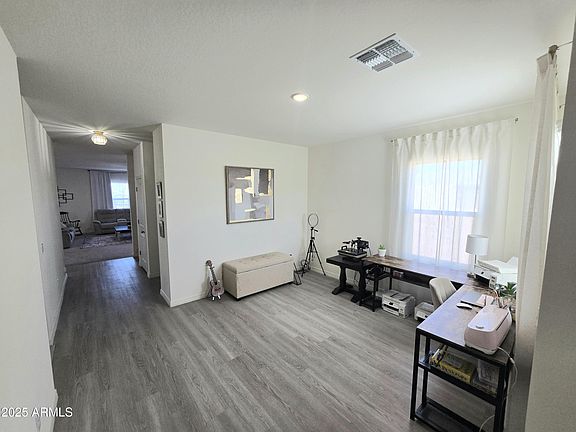 Beautiful San Tan Valley home built in 2023 in highly desirable Bella Vista Farms community with no backyard neighbors. This spacious 3131 sqft home features 5 bedrooms and 4.5 bathrooms with countless upgrades such as 9' ceilings, carpet & ceramic tile floors, granite countertops in kitchen with Whirlpool Stainless Steel appliances, modern white cabinetry and pantry. Energy efficient features thru-out. Wi-fi & programmable thermostat. Two Spacious walk-in closets in the master suite. Front yard is landscaped and backyard is a nice sized blank canvas ready for your own design. Don't miss out on this one!