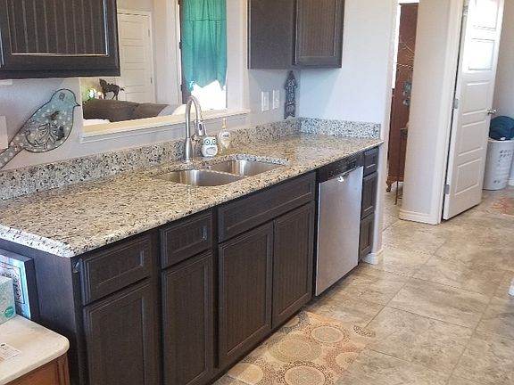 Beautifully designed home with great curb appeal stands out from the crowd! This home offers an open floor plan. A formal dining area and kitchen nook. The kitchen features granite counter tops, stainless steel appliances, easy close cabinets/drawers, and upgraded cabinets. The sequestered master bedroom has a jetted soaking tub and gorgeous walk-in shower, as well as a huge walk in master closet. Granite counter tops in both bathrooms and easy close drawers/cabinets. Has stone inspired tile throughout except for the bedrooms that are carpeted. Also has a great view of the mountain and a large yard that is expandable to close to the alleyway. A large covered patio. 2 car, large garage that is finished out. Drip system in flowerbed out front and automatic sprinklers in back yard.