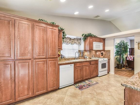 Fantastic Rancho Vista single story home on a corner lot. . Title shows this property is 4 bedrooms with the handicap remodel it is currently 2 large bedrooms and an office / den The home looks like a brand-new model home. This property has up grades galore. Lets start with newer flooring throughout. The kitchen has been up graded to include granite counter tops. Newer custom cabinets with slide outs and easy close drawers, newer recessed lighting have also been installed plus lots of built ins. The master bedroom suite has also been completely remodeled to include a LARGE master bath are with roll- in shower . The back yard is beautiful with a huge covered patio (Alum-wood type material) with built in lighting. Rail wood ties line the built in planters. There is also a side gate that can be used for storage or RV. The home has lots of other features including ceiling fans. Solar screens and a newer water heater
