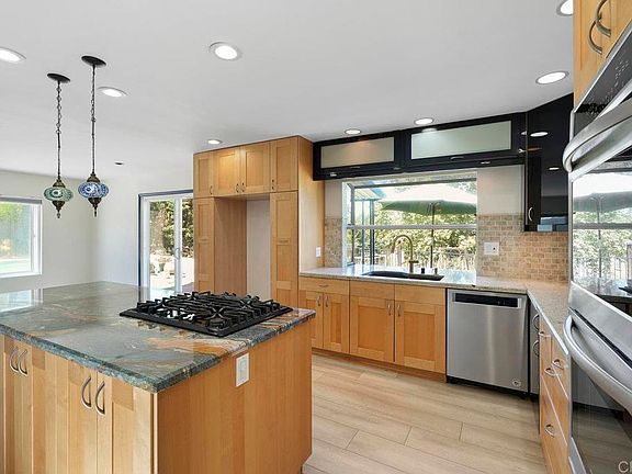 Discover your dream home in this stunning, light-filled oasis! Nestled at the end of a peaceful cul-de-sac, this modern gem offers a perfect blend of style and convenience. With an open floor plan, this 4-bedroom, 2.5-bath beauty features a main-level bedroom and bath, a sleek contemporary kitchen, and updated bathrooms plus one bedroom has a Murphy Bed. The soaring vaulted ceilings and skylights flood the space with natural light, creating an inviting atmosphere. Step outside to your private paradise, where a saltwater pool awaits in a massive, drought-tolerant backyard, complete with turf and vibrant succulents. Enjoy outdoor living year-round under the covered patio, relax by the cozy firepit and store all your tools in the custom wood shed. The oversized garage, equipped with a workbench and full cabinet set, provides ample space for all your projects. There is well designed storage all throughout the home. With fully owned solar panels, new pool equipment and a new water heater, this eco-friendly home is as efficient as it is beautiful. Located just minutes from top-rated schools, shopping, dining, and entertainment, this home is perfectly positioned for a modern lifestyle. Don't miss your chance to own this incredible property!