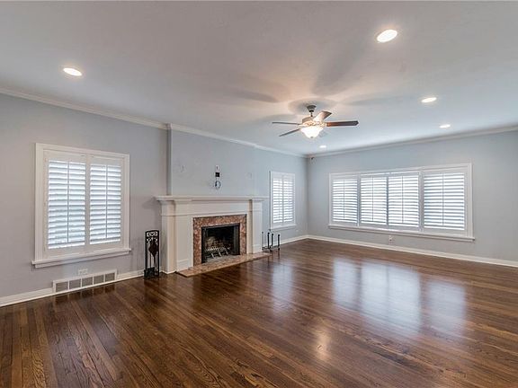 Beautiful updated Ridglea North Home on corner lot with circular driveway and upgrades galore! Gorgeous hardwoods throughout, large entry foyer, double landing staircase, huge rooms, split bedrooms all with walk in closets. Master suite downstairs with his and hers custom closets and attached master bath with elegant carrera marble. 3 bedrooms up. Marble fireplace with gas starter, private custom heated pool and spa with 4 waterfalls and color LED light show, floor to ceiling windows surrounding pool creates beautiful views, wood plantation shutters, one yard for playset, separate yard for pool, 2 car side entry large garage with storage. Steps away from Berney Park. Buyers to verify sqft and schools.