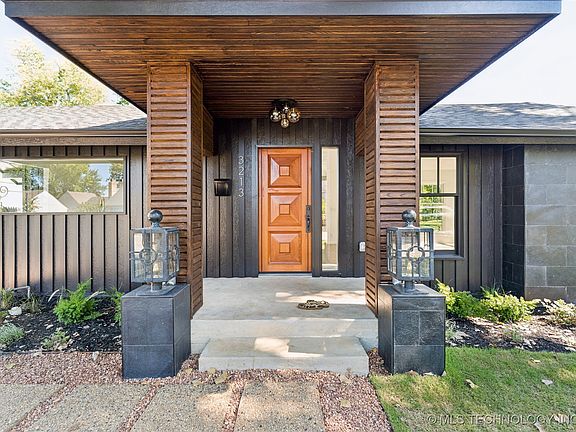Modern Elegance Meets Historic Charm in the Heart of Brookside Where Brookside charm meets the edge of The Gathering Place, this fully reimagined home offers the best of both worlds-classic roots and a fresh California-modern soul. Taken down to the studs and rebuilt with intention, this home stuns with vaulted ceilings, floor-to-ceiling windows, and a gas fireplace anchoring the airy living room. The view? A private, tree-lined backyard lush, expansive, and ready for your personal oasis. The kitchen is a showstopper: a massive black granite island, abundant seating, sleek appliances, and custom built-ins that blend vintage and modern with ease. Corner butted-glass windows provide panoramic views that truly wow. Solid antique doors create a timeless throughline-from front entry to back hallway. Every detail, from the updated hall bath to the spa-inspired primary suite, speaks of quality and calm. Covered parking connects seamlessly, and while the footprint is efficient, the home lives large-with thoughtful flow and elevated finishes throughout. Location. Light. Legacy. This is more than a home-it's a lifestyle rooted in one of Tulsa's most coveted neighborhoods.