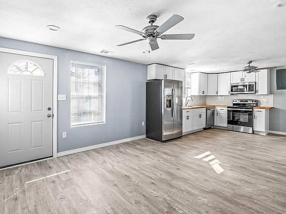 This is a MUST see completely renovated property. This charming home has been completely remodeled and is move-in ready. The open concept living area features a spacious kitchen with modern appliances, a dining area, and a cozy living room. The three bedrooms are well-sized and offer ample closet space. The bathroom has been beautifully updated with a new vanity, fixtures and shower. To top off all the updates, the SELLER IS OFFERING A ONE YEAR HOME WARRANTY PROTECTION PLAN. Outside, the property boasts a large backyard with plenty of space for outdoor activities and a patio area for entertaining. Conveniently located close to highway access, schools, parks, and shopping centers. Don't miss the opportunity to own this beautifully fully remodeled home.