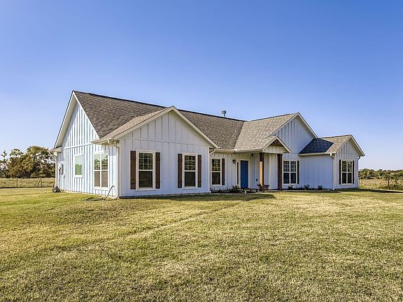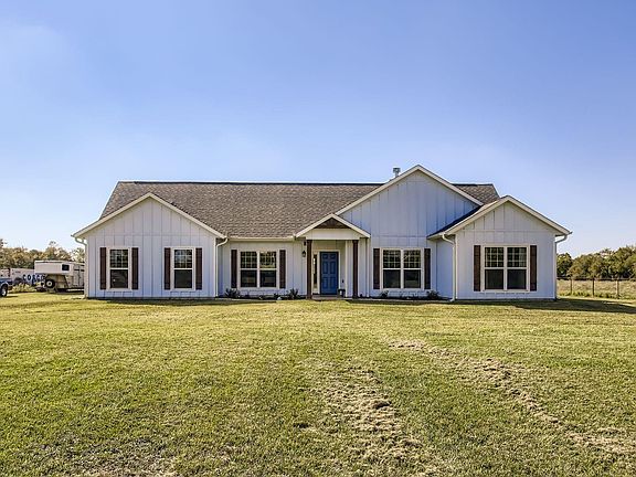 Experience refined country living in this exquisite farmhouse nestled on 3 sprawling acres of serene landscape. The home’s elegant blue exterior with rich wood accents exudes timeless charm, while the neutral interior palette and high-end finishes create a sense of understated luxury. The spacious living area showcases a stone fireplace and impressive ceiling details, blending rustic warmth with modern sophistication, while the gourmet kitchen features a large island. Retreat to the luxurious primary suite, bathed in natural light with panoramic views of the property’s rolling acreage. This home offers the ideal balance of comfort, elegance, and open space. An adjacent 3-acre tract (MLS#41309068) is also available, offering the rare opportunity to expand your private estate to a total of 6 acres. Additional acreage is available surrounding the property that you could build out a full ranching operation - request more information from the LA on adjacent acreage.