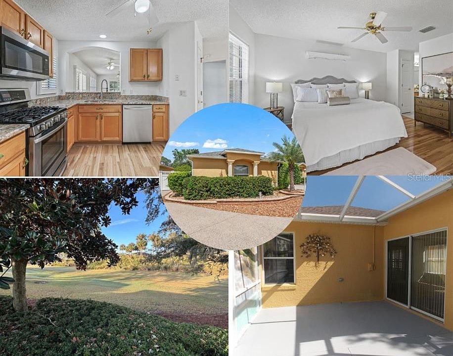 One or more photo(s) has been virtually staged. Back on Market. THE HOT TUB HAS BEEN REMOVED!!!! The scrubs and landscape have been trimmed!!!!!! BOND PAID! Charming 2-bedroom, 2-bath - Richmond Courtyard Villa located in Villa Berea, in the Village of Polo Ridge. The home features an eat-in kitchen with oak cabinets, pull-out drawers, a stainless steel gas range, stainless steel refrigerator, generous counter space, ample storage, and a closet pantry. A convenient pass-through connects the kitchen to the dining room, which offers sliding glass doors leading to the side courtyard—ideal for grilling or enjoying outdoor dining. The living room opens to a glass-enclosed Florida room with vaulted ceilings and a beautiful view of the Glenview Championship Golf Course fairway. The guest bedroom includes its own bath with a tub/shower combination. The spacious primary bedroom features a walk-in closet, private bath with shower and vanity, and sliding glass doors to the Florida room. Beautiful VILLA BEREA is surrounded by Glenview Championship Golf Course (feels exclusive!). Also, GOLF CART CONVENIENT TO: 3 grocery stores, a HUGE Walmart, approx 18 RESTAURANTS, HOBBY LOBBY, Ace Hardware, CVS, Walgreens, 2 gas stations, 4-5 Banks, POLO FIELDS, softball field complex, several swimming pools (2 are SPORTS POOLS), several recreation centers (one of which, Savannah Regional, has an 850+ SEAT THEATER hosting live performances!), Doctor offices, hair/nail salons, DIALYSIS CENTER, clothing stores, PetSmart, Urgent Care -- AND -- Golf Cart Convenient to Lake Sumter Town Square, Spanish Springs Town Square, MORE GOLF (Glenview, Nancy Lopez Championship Courses & other Executive Courses), more rec centers and more swimming pools ... there's too much to list!! --> MAKE THIS BEAUTIFUL VILLA YOURS TODAY !! Additional updates include: roof (2021), HVAC (2024) with a transferable 10-year parts and labor warranty, plus the HVAC has a 10 year service plan that the seller paid for! No HVAC expenses for 10 years! ECOBEE Smart Thermostat, and a sub-panel for generator quick hookup. Fresh interior paint and newly landscaped front yard enhance the curb appeal. Conveniently located near the Polo Fields, dining, and recreation. NO HOMES BEHIND, view of the Golf Course, beautiful mowed fairway behind. Great View! Trees and greenery.