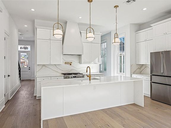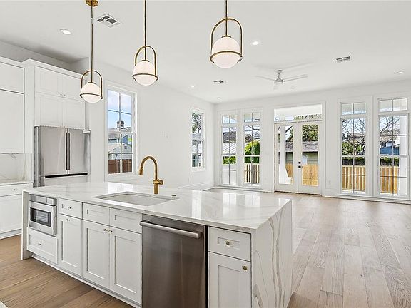 Spectacular new construction in the sought after IRISH CHANNEL neighborhood! Located steps to the best stretch Magazine St. has to offer, this low maintenance and affordable insurance stunner features 3 bedrooms 2.5 bathrooms, beautiful engineered hardwood floors throughout, high ceilings, tons of windows providing an open bright and airy floorplan, masterful kitchen/living design with gorgeous Quartz counters, large center island with waterfall edges, high end Bosch appliances including a 36 inch gas range, separate dining room with a soothing color shade, large covered deck off the living room extends the ultimate entertaining flow! Your spacious primary retreat is located downstairs and features a large CUSTOM walk-in closet, beautiful spa like bath with double Quartz vanity, soaker tub and large walk-in shower. The upstairs continues with high ceilings and is outfitted with two lovely sized bedrooms separated by a luxury bathroom and a large laundry room providing ever so needed storage! OFF STREET PARKING for two cars, fenced yard and tankless water heater adds to the efficiency this beauty has to offer. X flood Zone!