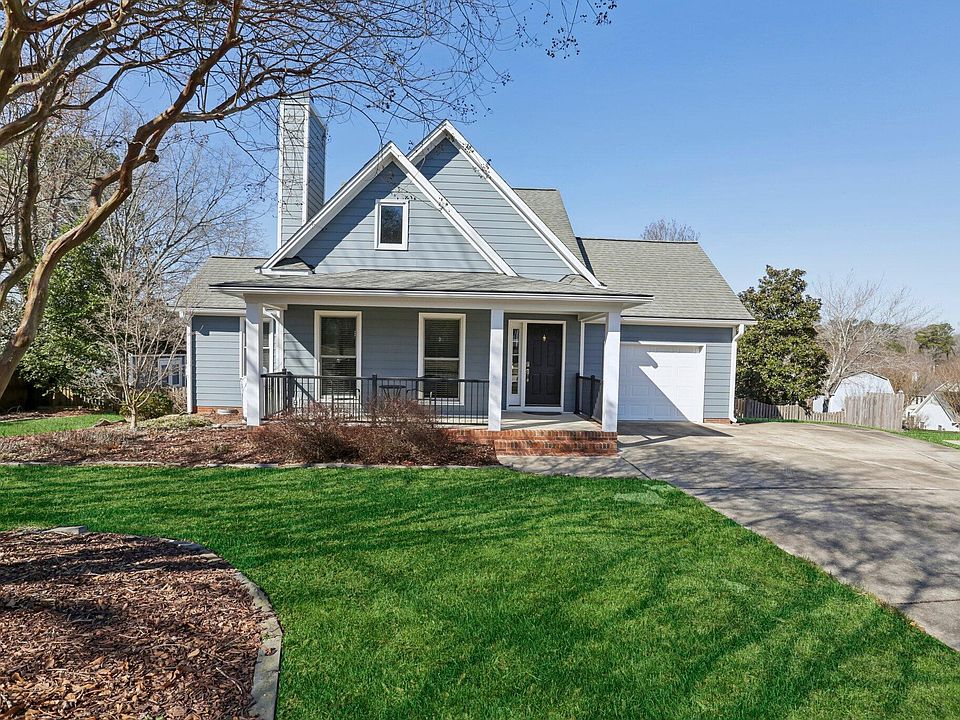 Nestled on a lovely cul-de-sac in desirable Northeast Raleigh, this meticulously maintained single-family home welcomes you with a first-floor primary suite, offering both convenience and privacy. Enjoy elegant interiors with a dining room featuring a sophisticated tray ceiling and a living room boasting a spacious vaulted ceiling. Recent updates showcase the home's commitment to modern comfort and style. The outdoor space is a true oasis, with a back deck and retractable awning perfect for sunset views, a well-appointed backyard designed for entertaining or quiet evenings, and a charming front porch. A thoughtfully designed landscape ensures seasonal blooms year-round, adding to the curb appeal. Practical amenities include an 8x12 storage shed, ample parking, and sidewalks throughout the neighborhood, enhancing the community feel. This property has been thoughtfully upgraded and is ready for you to create lasting memories. No HOA