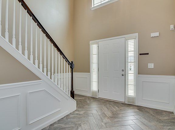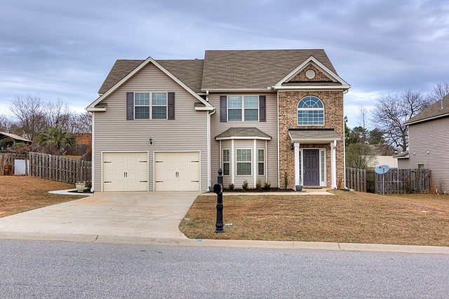 Gorgeous 5BR in a great neighborhood! Attractive exterior with craftsman detail, brick accents, & a level, grassy front lawn make for lovely curb appeal. Front door with sidelights opens to reveal fabulous wood-look tile floor which continues throughout all main living areas. Picture-frame wainscoting adds upscale appeal in foyer & continues into formal dining room which also boasts elegant coffered ceiling & bay window. Arched doorways & Cheyenne doors add character throughout. Spacious great room with stately fireplace is open to kitchen. Breakfast nook, snack bar, appliances, pantry & tile backsplash leave nothing to be desired! Laundry room double as mud room with garage access. 1 BR downstairs next to full bath. Upstairs, lavish owner BR boasts reading nook, vaulted ceiling, chair-rail molding & en suite bath with jetted garden tub, tile shower & tub accents, dual vanities, water closet & walk-in closet. Secondary BRs are spacious with vaulted ceilings. Backyard has covered patio!