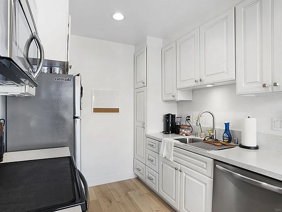 Rare opportunity in Point Loma. Located in the heart of the Midway District, this tastefully appointed Condominium has been updated throughout. Offering an open kitchen with stainless steel appliances, custom flooring, brick fireplace, a fully remodeled bathroom, which includes a custom tile shower, stone-topped vanity and LVP flooring. The interior wall surfaces have also been updated providing a modern look & finish. There is a private balcony overlooking the pool perfect for quiet mornings or an evening sunset. The oversized, single car garage provides room for storage as well as a washer/dryer. If you are looking for a turn-key property in Point Loma, this property is a must see!null