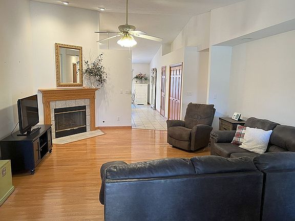 3213 Red Oak Ln, Springfield, IL 62712. 1600sq ft Duplex, 2 bedrooms, 2 full bathrooms (en-suite in the primary bedroom), 2 large walk-in closets, vaulted ceilings in the living room and kitchen and dining room areas, laundry room, pantry, and gas fireplace, with wide hallways and large extra closets. Flooring: Tile, Wood laminate, and Tile. 2 1/2 car garage. Built in 2000 on a 5,669 sq ft lot with a concrete patio in rear of the lot.