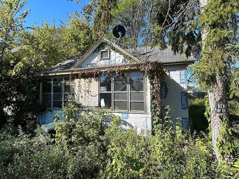 The property is gutted on the inside and requires extensive repairs, making it ideal for those ready to bring their vision to life.