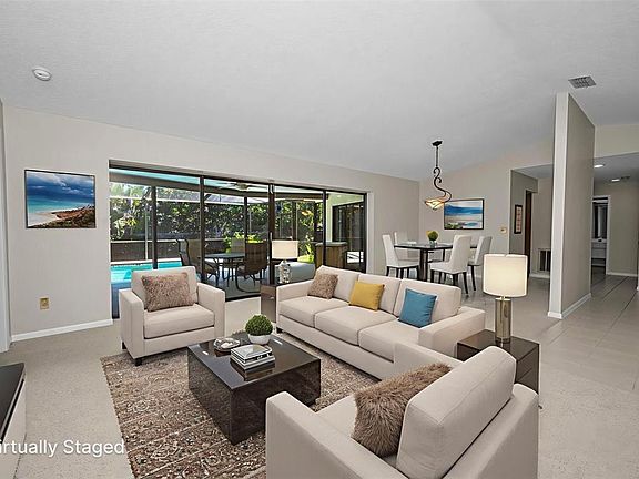 Amazing Equity Opportunity in Landmark/Countryside! Spacious 2-bed, 2-bath, 2-car garage Pool Home in highly sought-after Countryside/Landmark near Chi Chi Rodriguez Golf course and the Countryside Golf & Country Club. This property is priced well below market value, offering incredible potential for investors or homeowners ready to add their personal touch to build fast equity! Featuring: • Vaulted ceilings and an open, airy layout • Open floorplan living & dining room plus a large kitchen with family room and breakfast nook • Three sets of sliding doors opening to a screened-in (caged) swimming pool • Large fenced back yard for pets and/or children • Huge inside laundry room with plenty of space for an office or walk-in pantry • Convenient circular driveway is party ready for all your guests! • Newer roof (2020) . Home needs some cosmetic updates but has excellent bones and sits in one of the area’s most desirable neighborhoods. The layout offers potential for a third bedroom. Jump on this Rare Opportunity to own a pool home in Countryside without the restrictions or fees of an HOA. Create your dream home and build instant equity! Room sizes are approximate. SOME PHOTOS ARE VIRTUALLY STAGED.