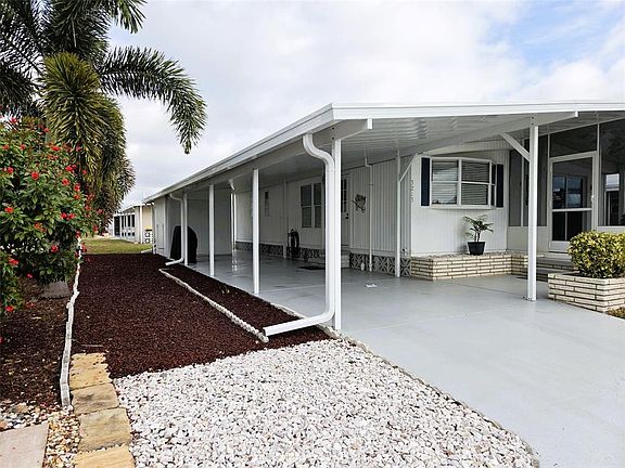 Discover Oakwood Manor in the heart of Sarasota! Experience resort-style living in this beautiful 55+ resident-owned community located within the Sarasota city limits. Spanning 90 lush acres, Oakwood Manor offers an incredible lifestyle for just $210/month. Residents enjoy a well-appointed clubhouse with a commercial kitchen, event stage, fitness center, and library. Relax in the heated pool and spacious hot tub, or join friends for bocce ball, shuffleboard, or pickleball—with brand-new courts located along the nearby Legacy Trail, just a short bike ride away. Please note: This community does not allow pets, motorcycles, or RVs. This beautifully maintained 2-bedroom, 2-bath home offers 960 sq. ft. of bright, open living space and comes fully furnished and move-in ready. Recent updates include a new carport, lanai, and gutters, a 2-year-old AC system with a renewable maintenance contract, new laminate and bathroom flooring (2024), a 5-year-old roof, and updated plumbing in both bathrooms and the kitchen. The kitchen is fully equipped with a refrigerator, range, dishwasher, and a full-size washer and dryer. Perfectly positioned just steps from the pool and community amenities, this home offers both serenity and convenience—no car needed. Enjoy close proximity to downtown Sarasota, Siesta Key Beach, St. Armand's Circle, SRQ Airport, shopping, dining, and two hospitals.