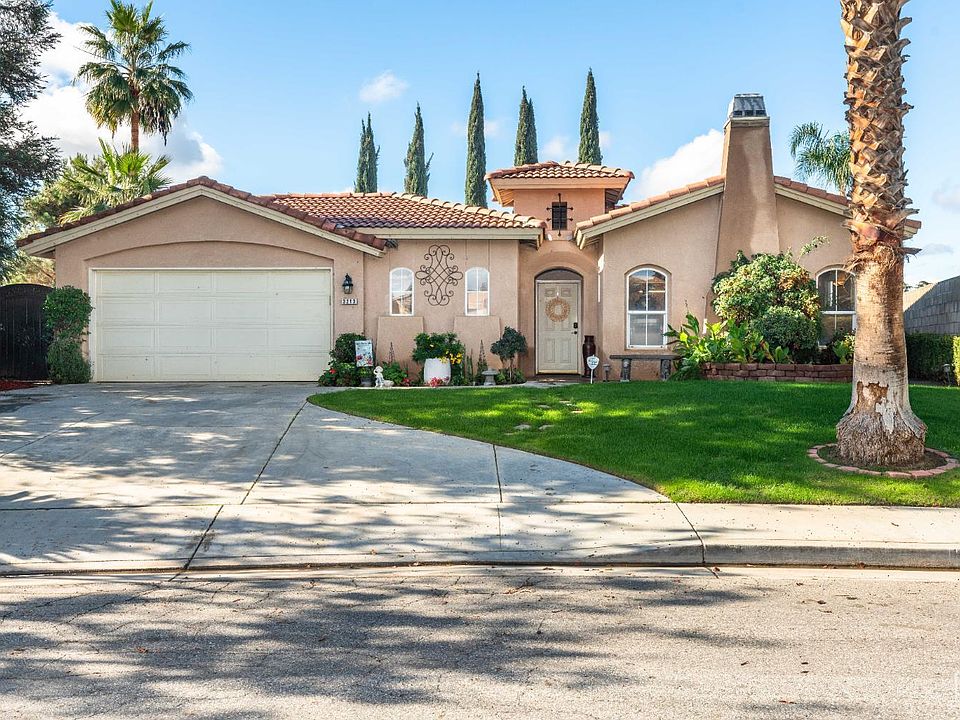 This Spanish-style home in a desirable Seven Oaks neighborhood near Grand Island offers a 10,000+ sf lot and a welcoming central courtyard with a sparkling pool that creates a true focal point for indoor-outdoor living. With 2,076 sf, the home includes 4 bedrooms and 2 bathrooms arranged in an open floorplan that connects a vaulted-ceiling family room, a dining area filled with natural light, and a spacious kitchen featuring granite counters, a decorative tile backsplash, abundant cabinetry, and a large island with a sink. The primary suite provides comfort and privacy along with direct access to the courtyard and pool. The backyard offers generous space with mature trees, winding pathways, and brick-accented areas ideal for relaxing or entertaining. Located near Windermere Park and set within the highly regarded Stockdale High School district, the home also sits close to high-end shops and restaurants, adding to its overall convenience and appeal.