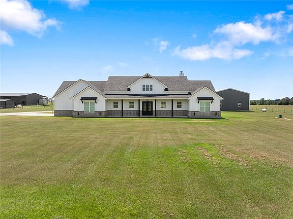 This property blends space, versatility, and functionality with a layout designed for a variety of needs. The main home features 4 bedrooms and 4.5 bathrooms with an open floor plan connecting the living, dining, and kitchen areas. The living room includes a vaulted ceiling with wood beam detail, floor-to-ceiling brick fireplace, and large windows for natural light. The kitchen is equipped with a center island, custom cabinetry, stainless appliances, and a walk-in pantry. The primary suite offers dual vanities, a soaking tub, and a walk-in shower, while each secondary bedroom includes a private en-suite bathroom. A half bath serves guests in the main living area.