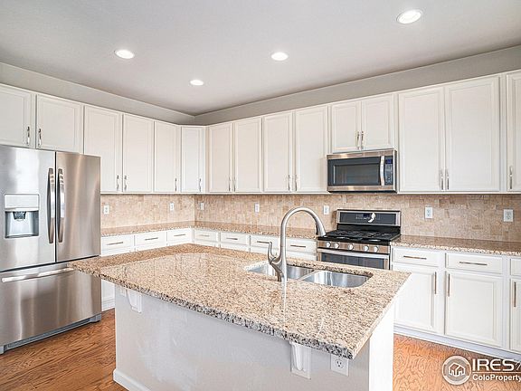 Price adjusted! Beautiful 2-story home backing to open space and trails in the lovely neighborhood of Rigden Farm in central Fort Collins. As you approach, you are greeted with a welcoming front porch and beautifully landscaped grounds that set the tone for the sophistication within. Enjoy meeting your neighbors or having your morning coffee here. This home includes 4 bedrooms, 4 baths, finished basement, beautiful hardwood floors and so much more. As you enter the home you will notice there is a ton of natural light that floods the main living spaces. As you move further there is a large eat-in kitchen with granite countertops, stainless steel appliances, custom cabinets with pull out drawers that opens to the dining room and family room that includes a gas fireplace to cozy up to any time of year. Upstairs there are 3 of the 4 bedrooms as well as a nice sized loft/study space that may be possible to make a bedroom, as well as the laundry area making it very convenient. The primary suite includes a 5-piece bath with bench and large walk-in closet that includes built-in shelving. There is a fully finished basement with 3/4 bath and large bedroom and recreation area to do with as you wish. There is an ample sized 2 car attached garage and a storage shed out back, as well as a deck. Situated near parks, trails, shopping, and top-rated schools, this Rigden Farm gem offers both convenience and an exceptional quality of life.