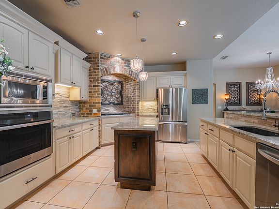 In-ground heated swimming poolBackyard pool viewsWarm finishesMature oak treesGuest quartersWater softenerExpansive windows