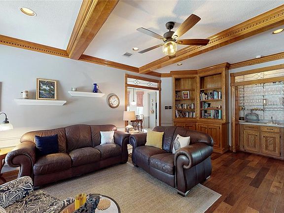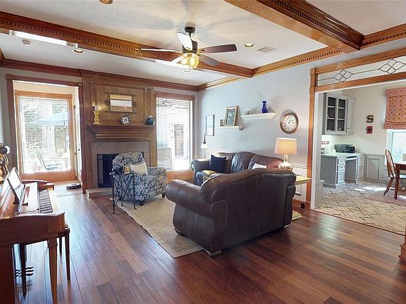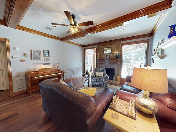 This lovely home is well located on a quiet cul-de-sac with beautiful trees. The backyard stone patio is perfect for entertaining and family fun. A three car garage with an A/C window unit is a real plus. Sellers have installed $55,000 worth of new windows and some custom wood blinds. There are two master suites, one upstairs and one down. The upstairs master can easily be used as a large game room. The downstairs bath has a walk-in shower, granite countertops and a huge closet. A spacious, updated kitchen features a vaulted barn wood cathedral ceiling, quartz island, granite countertops, tons of storage, brick flooring and a walk-in pantry. There is a very large laundry room with built-ins, storage and countertops for folding. There are two living areas downstairs and a formal dining room. The downstairs features beautiful wood flooring. All measurements are approximate, please measure if important.