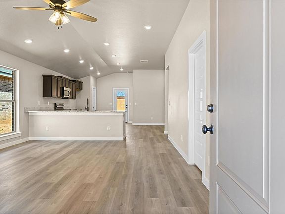 Buy NOW and get up to $10,000 FLEX CASH! Brand-New, Move-In Ready Home! This charming 1,550 sq. ft, 3-bedroom, 2-bath home welcomes you with an all-brick exterior covered front entry. The open concept is ideal for family gatherings, with a spacious living and dining area. The kitchen peninsula provides additional seating options with plenty of counterspace and stainless steel LG appliances. The primary suite boasts a large walk-in closet complete with ample built-in shelves. The covered back patio is perfect for relaxing and enjoying the beautiful West Texas evenings.