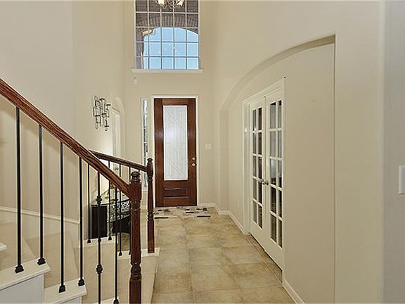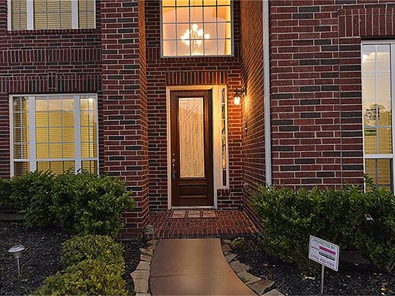 Waterfront Meritage ''The Chateau II'' plan on an oversized lot in Canyon Lakes! Extensive tile flrs, soaring ceilings, curved archways, wrought iron staircase, art niches & abundant windows capture lake views throughout. Island kitch w/granite counters, bkfast bar, stainless appl's, undermount sink & stained cabinets opens to bkfast rm; Juliet balcony overlooks den w/gaslog FP; elegant formal dining; study w/French doors; mster & 2nd bedrm down; gamerm & 3 bdrms up; fenced yard w/covered patio.