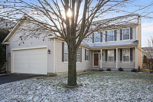 Great interior location within desirable Fisher Farms subdivision. Covered front porch invites you inside to the gracious hardwood entry with turned staircase. Sought after floor plan with kitchen island and eating area open to family room with cozy gas log fireplace. Stainless steel appliances, tons of cabinetry and counter space in big kitchen. 1st floor den could make great guest suite with adjacent full bath. Vaulted master has big walk-in custom closet, private bath with dual sinks, soaker tub and separate shower. 9' and two story ceilings on 1st floor. The large brick PAVER PATIO in FENCED YARD is the perfect spot to relax, grill and entertain. Get ready to play in wonderful yard that includes playset and basketball hoop. Close and convenient to Geneva Commons, restaurants, hospital, fitness, award winning Geneva schools and Metra. NOTE: New hardwood flooring will be installed the first week of April in Foyer, Hallway, 1st Floor Bath, Kitchen and Eating Area!