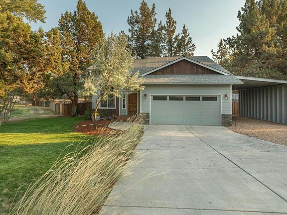 Extremely cute updated custom two-story home on an acre lot in a nice SW Redmond neighborhood. This is an amazingly private, quiet location next to Redmond Memorial Park. Walking path right next to the home. Totally fenced backyard with large shade trees and big shed. Long driveway with attached double car garage and carport with room for RV. Enter the 2 story vaulted ceiling home into the living room, with cozy wood burning stove that can heat the whole house. The kitchen has granite counters and stainless steel appliances. All newer interior doors and with trimmed door and window openings. LED lighting throughout. Newer tile flooring throughout with newer carpeted stairs and bedrooms. Primary with a hall bath is on the main floor. Washer and Dryer in hall closet. Newer paint and cement Hardie front siding and newer roof. Enjoy the simplicity of a home ready to go, all you need to do is move in.