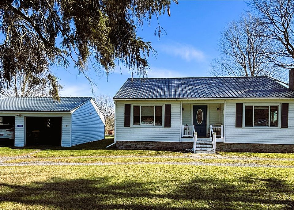 Welcome to this well-kept ranch set on 1.33 acres of open, peaceful countryside. Offering easy one-floor living, this inviting home features a bright natural light layout, Andersen windows, and beautiful country views. The front door opens directly into the comfortable living room with large windows, creating a warm and welcoming first impression. From there, the eat-in kitchen offers abundant cabinetry, Silestone Quartz countertops, a kitchen island, with matching appliances, and flows easily into the formal dining room which features a back door leading out to the yard. The current formal dining room could be an additional bedroom with lots of natural light shining through and views of the country! The primary bedroom includes a walk-in closet which used to be part of a 3rd bedroom, and the second bedroom sits just down the hall. The full bathroom has new flooring, and there is a dedicated laundry room which was also part of the 3rd bedroom and could easily be converted back to a 3rd bedroom and the laundry could be moved to the current formal dining room area. There is hard wood flooring under all of the current flooring.