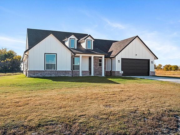 Beautiful 4 bedroom 2 bath modern farmhouse board and batten siding and brick home sitting on 1 acre lot. Home has a split floorplan with luxury vinyl and ceramic tile flooring. Walk in the front door to a spacious oversized great room that opens to the kitchen and dinning area. One of the 4 bedrooms is separated from the other two secondary bedrooms and could be used as a home office or a second living area. The primary bedroom is spacious and the bath has double vanities, large soaking tub, oversized shower and nice walk in closet. The garage has an opener and is oversized for extra storage. Owners are motivated to sell.
