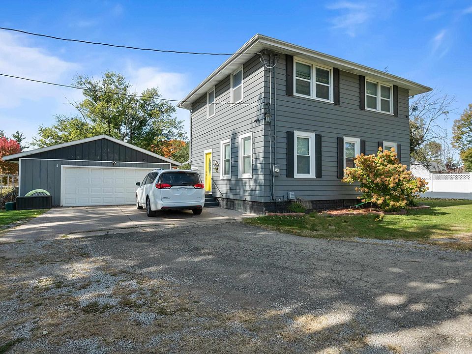 Beautiful farmhouse situated in Moline. The main level of this home has an updated kitchen with concrete countertops, stainless steel appliances, a breakfast bar and many windows to let natural light shine through to the large dining area. There is a spacious living room, and bedroom as well as a second area for a family room/office off the kitchen. Great deck off the dining room perfect for entertaining. The upstairs features 3 bedrooms with a walk-in closet and private bath access in the master bedroom. Large fenced-in backyard as well as new arborvitae planted around the perimeter for privacy. Updates include Furnace/AC in '17, water heater in '20, and replacement windows upstairs in '17 and downstairs in '20. The oversized 2-car garage has plenty of room for storage or projects.