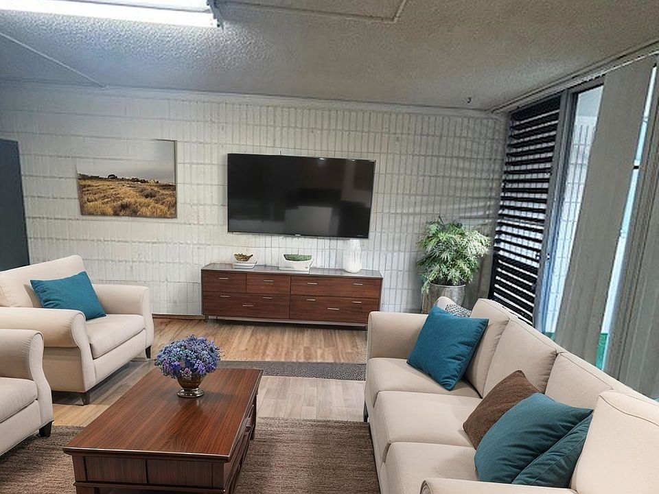 This centrally located unit features three bedrooms, two bathrooms, and two parking stalls, offering a total living space of 992 square feet, along with an additional 48-square-foot covered lanai. The unit has great potential and will be sold strictly "as is." Bring your designer and contractor to help create the living space you desire. Situated on the second floor, it boasts a spacious covered lanai and an extra storage closet, which is a unique feature available only on this level. The building provides a variety of amenities, including a gym, sauna, pool, pet area, playground, recreation area, and game room. It is well-maintained and secured with patrols. Additionally, a new fire sprinkler system has been recently installed. The location of this building is highly sought after, with access to excellent schools, shopping, parks, a golf course, and convenient freeway access in all directions.