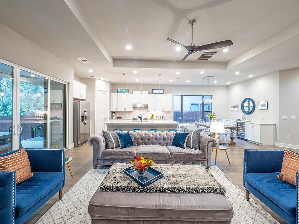 Beautifully decorated 2015 Custom Build in Tarrytown available for luxury furnished lease. This property features rich hardwood flooring, floor to ceiling sliding doors to a covered patio and luxury finishes throughout. It has an excellent open concept floor plan, with 2 living areas, 2 beds and 2 baths down and 2 beds 1 bath up. The Kitchen features granite countertops, stainless high end appliances, and a luxury gourmet island. The property has a large fenced yard with mature trees, lots of shade and a firepit area. The house is set back from the road and is on a quiet street. Feeds into Casis, O'Henry and Austin High, all highly rated schools. Walk to nearby Lake Austin Restaurants and just a 5 minute commute to downtown. Available early January for 4-6 months leases Cleaning Fee: $500 Pets: Cats only (max 2) $400 per pet 4 month lease minimum