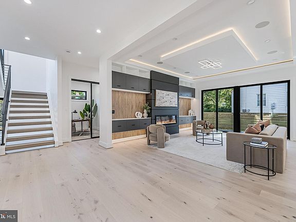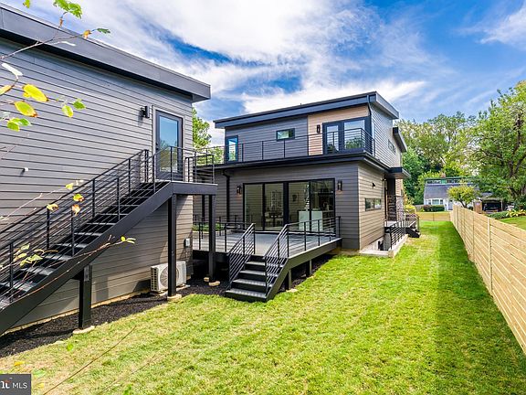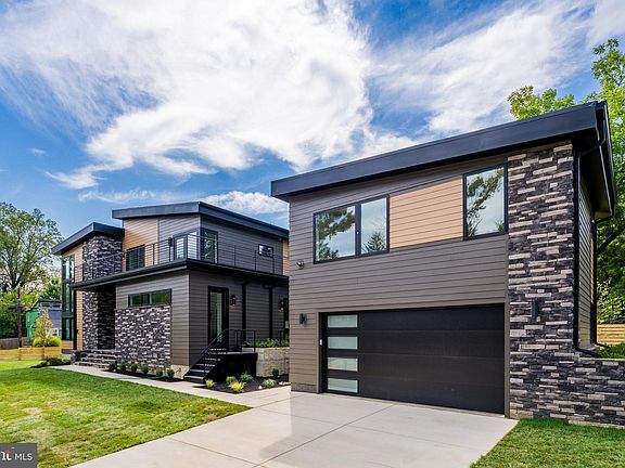 Welcome to this one-of-a-kind dwelling which blends mid-century exterior form with modern interior design. It was expertly crafted by NextDayRemodeling and designed by Axis Architects and backed by a Builder's Warranty. This striking 5,600 SqFt custom build is situated on 1/3-acre premium, fenced corner lot, with a 400 SqFt apartment loft atop the detached garage (22'x20'). It spans 3 levels with 5 bright bedrooms and 5 luxurious baths (main house). Garage parking for 2-cars, plus 4-car driveway, and 6-car curbside! This home features an unrivaled open-concept plan perfect for modern living and entertaining. The stunning living room boasts 10-ft inverted tray ceiling with LEDs, Bluetooth ceiling speakers, fireplace accent wall, and deck access. The gourmet kitchen features 10-ft waterfall quartz island, JennAir stainless appliances, two-tone cabinetry, walk-in pantry, and sgd to a second Trex deck. On the main level, there is also an office, bedroom, and full bath. Next to the dining area is a side door that leads to the mud room with a built-in bench and a pet washing station. A dramatic floating staircase with a corner wall of windows leads up to the vaulted family room with 15-ft ceiling height, skylights, and balcony access door. The primary suite features floor-to-ceiling windows, luxurious soaking tub and shower, walk-in closet, dry bar, and private access to the balcony. Two other ensuite bedrooms and a separate laundry room complete the upper level. The open basement boasts a large recreation area, gym, wet-bar, ensuite bedroom, and walk-up stairs to the rear yard. The Bel Air neighborhood is tucked away yet minutes from major highways, I-495, I-66, Rt 50, East Falls Church Metro, and key destinations, such as, the Mosaic District, Tyson's Galleria, and Inova Fairfax Hospital.