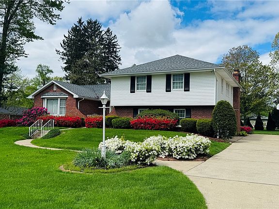 Stately and distinctive, this immaculate brick and vinyl multi-level home is perfectly positioned on a quiet dead-end street. A pair of dramatic swooped brick walls and a charming gate create a grand introduction, guiding you to the formal front entry underscored in timeless black tile. The expansive living room opens through an elegant arched entry to a formal dining room. The fully equipped kitchen showcases walls of rich dark cabinetry, sleek stainless and black appliances, rustic beamed ceilings, and contrasting white ceramic flooring. A stunning sunroom features a wall of windows, knotty pine ceiling, and direct access to the rear deck and patio. The ground level hosts a powder room, laundry area, and family room anchored by a handsome brick fireplace. The master suite offers both comfort and convenience with 2 closets and a private en-suite bath. Finished basement is accompanied by a game room and a full kitchen area. Newly installed french drain system for added peace of mind!