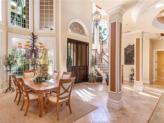 Spectacular Moorings Bay Water Front Home. One of the best water front lots on Crayton Road and Moorings Bay. First time offered. This estate home has over 5500 sq ft of air conditioned space and from the moment you open the front door, water envelopes you. Meticulously cared for inside and out, two story with massive upstairs and downstairs open lanai's, brand new sea wall in 2016 new roof in 2013. Propane throughout the home for cooking, heating of the pool. double ovens, fireplace, 4 very large bedrooms with master on the first floor, very generous upstairs office with views of Moorings Bay. boat lift, three car garage, thermador appliances, wine room, living, dining, eat in kitchen disappearing edge pool with jacuzzi, large laundry room, rought iron banisters on staircase, elevator, huge kitchen with tons of counter space. Ceiling treatments through out the home. Pocket sliders open the home to the outside. Enjoy massive water views from every room in this wonderfully designed home.