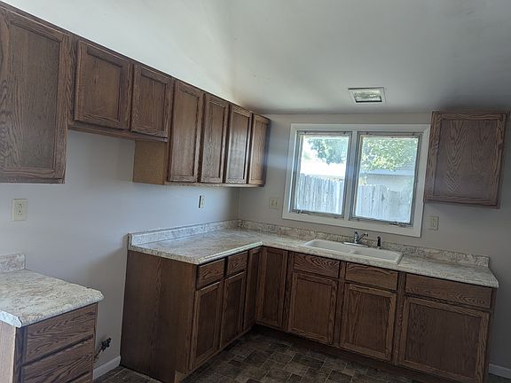 Tenant responsible for utilities and lawn mowing and upkeep. Small dogs allowed with pet deposit. Large windows/lots of light, good-sized rooms, recently remodeled bathroom,vaulted ceilings, fresh paint throughout, large back yard with fence, good area, flooring in kitchen, dining room and bathroom will be replaced before tenant moves in. Windows in kitchen is getting replaced.