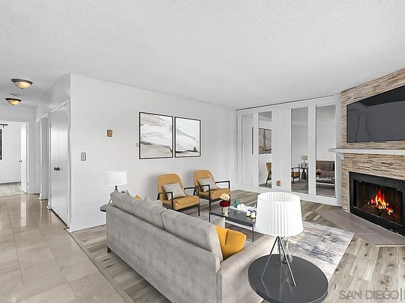 Live moments from the coastline in one of San Diego’s most iconic and convenient neighborhoods. Located within a gated complex this stylish 2-bedroom, 2-bath condo offers an unbeatable lifestyle with a *private side-by-side 2-car garage* Situated on the top floor, this light-filled home enjoys added privacy, no upstairs neighbors, and elevated views—making it one of the most desirable units in the complex.  Bathed in natural light, the interior features an open layout with elegant sleek quartz countertops in both the kitchen and bathrooms. A cozy stacked-stone, wood-burning fireplace adds warmth and charm to the main living space. Residents enjoy access to a well-maintained community laundry room and a VA-approved complex with low-maintenance living.  All of this in an unbeatable location just minutes to the beach, Liberty Station, the airport, major freeways, and top shopping and dining. Homes with this level of style, comfort, and parking flexibility don’t come around often—schedule your viewing today.