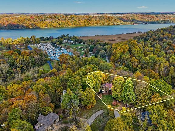 Welcome to 3215 Overlook Circle—an incomparable, custom-built, one-of-one estate unlike anything else in the award winning North Oldham School District. Privately nestled within an exclusive enclave of just ten other River Ridge properties, this picturesque home rests on 1.44 wooded acres overlooking Tartan's Landing Marina, offering a rare synthesis of privacy, presence, tranquility, and nature-framed beauty. Approached via a stone-gated ascending drive, the property reveals itself in quiet grandeur at the end of the neighborhood loop—surrounded by mature trees and the flowing rhythm of the Ohio River below. The neighborhood itself is a hidden Goshen gema private circle of homes surrounding a lush, abundant, park-like green space that fosters both serenity and community. It's the kind of setting where nature frames every view, yet the conveniences of Louisvilleshopping, dining, and interstatesare just minutes away. The perfect blend of country charm and city amenity. Homes of this exclusive distinction in such an intimate enclave seldom reach the market, making this a truly rarified offering. Inside, the spacious layout combines classic architecture and livable luxury with endless potential for the next owner's custom vision. The welcoming vaulted foyer features hardwood floors, twin guest closets, and a stained-glass Palladian window that bathes the space in natural light. To one side, a richly paneled all-wood library with built-in bookcases and pocket doors offers an ideal retreat for reading or work. Across the hall, the formal dining roomframed by dentil molding, chair rail, and chandeliersets the stage for elegant dinners and special occasions. The family room anchors the main level with a gas fireplace, beamed ceiling, and wet bar, perfect for gatherings large or small. Expansive Andersen windows frame peaceful views of the tree canopy and marina below, while glass doors open to one of three decks, each designed to immerse you in the tranquil surroundings. The kitchen is both generous and practical, featuring Silestone countertops, rich hardwood cabinetry, stainless-steel appliances, a pantry, and a planning deskplus seamless access to the deck for morning coffee, entertaining, or relaxing amid nature. Upstairs, the primary suite is a retreat of impressive scale. A sitting area, wood-burning see-through fireplace, and private terrace create warmth and intimacy, while the spa-inspired bath offers dual vanities in separate areas, a whirlpool tub, dual-head shower, and skylight. The enormous double-section walk-in closet is a showpiece in itself, offering abundant built-ins and organization. Two additional bedrooms share a Jack-and-Jill bath, each with its own vanityone with a skylight for stargazing, the other with a cozy sitting alcove. The lower level expands the home's entertaining and flexible living spaces with a media room, game area, and wet bar with ice maker. Pool table can remain with the home. A large flex room with dual closets can serve as a fourth bedroom suite (no egress), home office, or fitness studio, complemented by a full bath. Step outside to the covered deck and unwind in the large, high-end 6+ person Jacuzzi hot tub, perfectly positioned to enjoy the wooded backdrop and abundant birdlife that frequent the property. Additional highlights include tankless endless hot water, dual heating systems, central vacuum, gutter helmets, intercom system, and brand-new septic pumps with updated wiring. Throughout the home, Andersen windows capture the changing light, reinforcing the connection between indoor comfort and natural tranquility. This residence is poised for its next chapterready for the next fortunate owner to personalize and elevate it to their own taste. Whether through modern refreshes or grand re-imagining, its foundation of quality, location, and timeless character ensures lasting value. 3215 Overlook Circle is a legacy of a property and home; it is a one-of-one estate where presence,