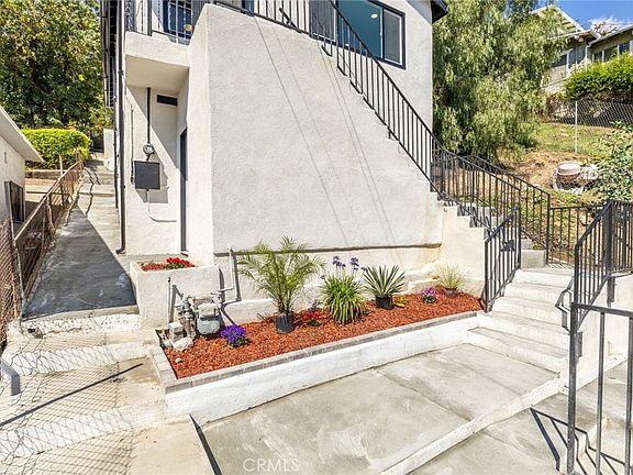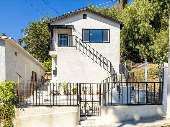 Perched above the street sits this remodeled bungalow, offering a tranquil retreat with tree top city views. Completely gated for privacy, the home has a meticulously designed layout maximizing the space. Notable features of the transformation include all new drywall, new laminate flooring throughout, new dual paned windows, new interior and exterior doors, new kitchen with quartz countertops, new cabinets, new mini split air/heat system, an all-new bathroom including walk in shower, new tile, new vanity with quartz counters, all new fixtures throughout and the house was freshly painted inside and out. Off the kitchen is the separate laundry room, which leads to the private back patio, with room for a BBQ or hot tub. Up the stairs above the patio offers an extensive flat cemented area, with breath taking unobstructed views, waiting to be reimagined; possibly an ADU, or an entertainer's deck? This home also offers room for a multi-generational family, or the opportunity to make it 2 units with it's completely finished basement offering its own entrance, perfect for roommates, older children, parents, or the possibility to earn extra income to help with the mortgage. The basement offers two rooms, one smaller for an office or dining room, etc. and one larger for a living/bedroom, and a separate bathroom. The basement has its own mini split air/heat system and measures approximately 425 square feet. The outside back, side and front yards have been re-cemented, including the remodeled stairs, and drought tolerant landscaping. This is a great opportunity to enjoy one of LA's hottest neighborhoods, while being close to nature with its proximity to Deb's Park, and Ascot Hills. Adjacent to Highland Park, South Pasadena, Montecito Heights, Lincoln Heights and easy access to DTLA. All of this and its convenient central location makes this a must-see home!