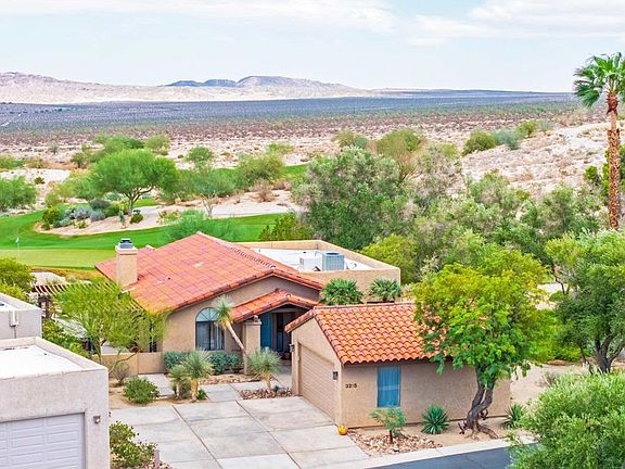 Located on the 9th hole of the prestigious Rams Hill Golf Club, this beautifully maintained home offers breathtaking views of the golf course, surrounding mountains, and expansive desert. Situated on a large lot with no neighbors on one side, privacy and tranquility abound. Step inside to discover an open floor plan featuring high ceilings, Saltillo tile throughout, and seamless indoor-outdoor living. The spacious living and dining areas flow effortlessly into a beautifully upgraded kitchen, perfect for entertaining. Both large en-suite bedrooms offer direct access to the low-maintenance desert garden and patio areas, allowing you to enjoy the serene landscape from every room. Outdoor living is enhanced with a spacious patio and yard ideal for relaxing or dining al fresco. Enjoy the convenience of being just a short walk or golf cart ride away from amenities including tennis and pickleball courts, two swimming pools, a spa, the acclaimed Tom Fazio designed golf course, and the Rams Hill restaurant. This is desert living at its finest combining comfort, elegance, and the ultimate in resort style living.