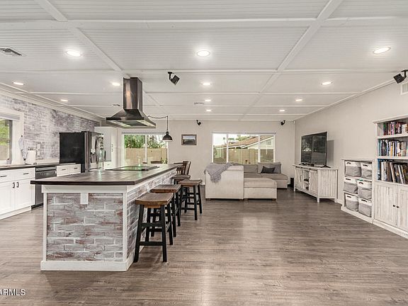 Beautifully remodeled home in a desirable Phoenix location! Tons of natural light. Spacious great room with beadboard ceiling! With a fireplace as the focal point, the inviting den makes a great entertaining space. The kitchen includes stainless appliances, butcher block counters, veneer accent details, white shaker cabinetry, and a huge island with a breakfast bar. The main bedroom has two closets, and new sliding doors to the backyard. The large backyard with artificial turf is a true retreat! Two covered patios, pergola, and a citrus tree. New windows. New AC. Double RV gate. Large two car garage w/storage area. Outdoor shed for storage. Newer roof.