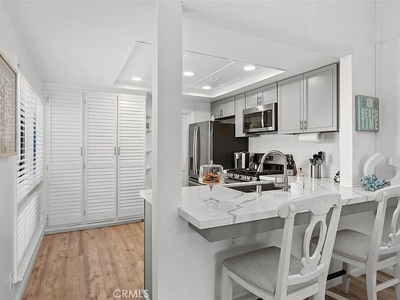 32152 Via Viente is the single level charmer you've been seeking. You're going to love that this home is tucked away in the back of the tract in a quiet cul-de-sac. This lovely home is absolutely stunning, with ship-lap clad ceilings and walls making it feel beachy and elegant. Everything is on trend including the kitchen remodel with sparkling quartz counter tops, and soft grey cabinets. The luxury vinyl plank flooring makes the home light and bright, while being carefree. This end unit home has a private, low maintenance patio that will be your sanctuary as you take in the ocean breeze. That's right, you're just down the riverbed trail to Doheny State Beach and Dana Point Harbor, not to mention being just a few blocks away from historic downtown San Juan Capistrano with it's shops and restaurants. Other noteworthy features include a full sized driveway and direct access garage, and high vaulted ceilings throughout most of the home. These single level homes sell fast, so don't delay in touring this hot property.