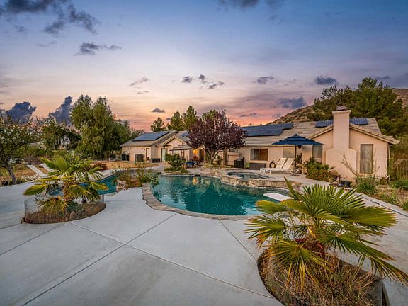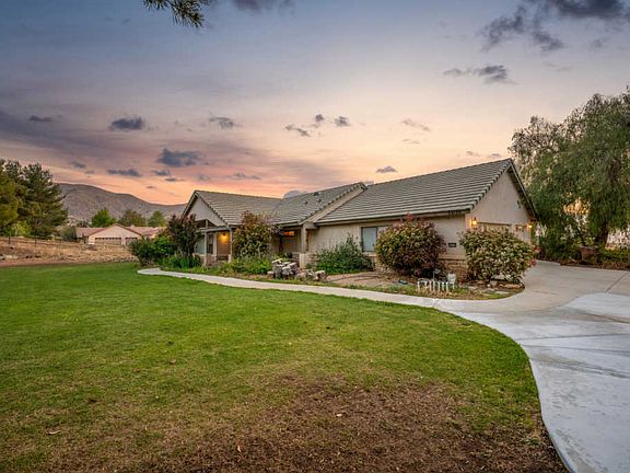 Beautiful Ranch Style Pool Home! Enjoy those hot summer days in your large entertainers' backyard with a sparkling unique custom pool and spa. This home, equipped with solar, offers 4 large bedrooms, 3 full baths, open formal living room with wet bar and dining room in addition to a spacious great room with fireplace. The beautiful kitchen features granite countertops, wraparound counter, tons of storage and counterspace, stainless steel appliances and a breakfast nook, a must see. Enjoy cozy winter nights in your master suite by your private fireplace. You will love the large walk-in closet, beautiful master bath with his and hers sinks, separate shower, tub, and a slider that leads to the spacious backyard. Private 4th bedroom and full bath are located on the far end of the home perfect for multifamily. This home sits on over 1.8 acres of usable land, all zoned A2 with plenty of room for ALL your animals, RV and toys. Enjoy all the city amenities including county water, natural gas,