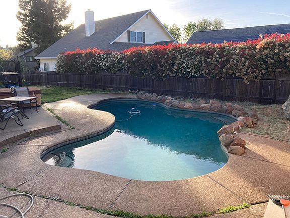 This home is located in Cameron Park Airpark. You will notice lots of natural light pouring into the house as soon as you step through the open concept entryway. It is in a coveted location and offers a front row seat to air traffic. Equipped with new flooring, carpet and premium vinyl plank throughout. One story, open and bright with big windows giving a great view of backyard pool, Jacuzzi and fenced in yard. The kitchen is open with plenty of cabinet space, counter and prep space. Attached to kitchen is a dining nook as well as indoor laundry with half bath. Laundry room can be separated from dining nook with sliding wood door for noise control. Renovated hangar can fit up to 2 small airplanes inside, or up to 5 cars, easily. It is attached to mud room with fresh paint and new windows. Hangar was completely renovated in 2022. This spacious home has a cozy living room which includes a beautiful pedestal wood stove fire place. Perfect for family movie nights or alone time. Next to the living room is a dining room and den with built in electric fireplace which will cater to any atmosphere where you need supplemental heat. Living room, dining room and den may be separated with sliding wood doors. Romantic master suite includes a private balcony with spacious bathrroom, shower and tub. Walk-in closet attached to master suite. Three bedrooms of ample size. This home is on .46 acre and in a prized location inside the Airpark. Within walking distance to the picturesque Cameron Park Lake, including a private entrance to the lake from the Airpark. You can easily watch the airplanes on the runway as they taxi to the gate, takeoff and land. This lovely property is unique in its location and all that it has to offer. month to month