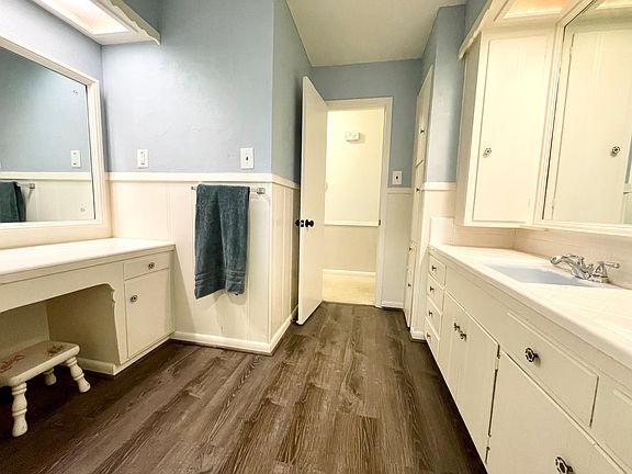 Large bedrooms and abundant cabinet space throughout. Master has 2 closets, one is walk in. New granite countertop and updated painting and fixtures in master bath.