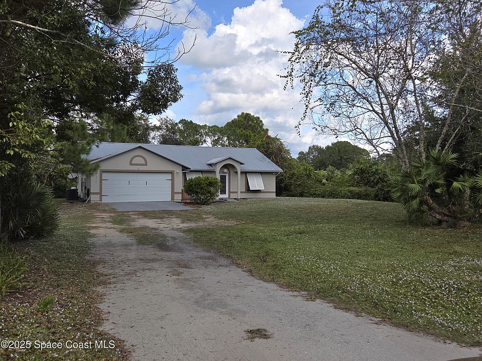 Why not make this your country home for the holidays??? This beautiful home is waiting for the perfect new owners who want peace and tranquility! Located on 1 acre of land in Canaveral Groves! Features of this home include a metal roof (2013), hurricane shutters, tankless hot water heater, granite countertops in kitchen with breakfast bar, NEW electric range/oven, separate dining room, inside laundry room, vaulted ceilings, split bedroom floorplan, and a large screened porch for entertaining. Plenty of room for boats, RV, or other toys! Fresh exterior and interior paint and a new electric range! Primary bath has beautiful walk-in shower, double sinks, and large closets.